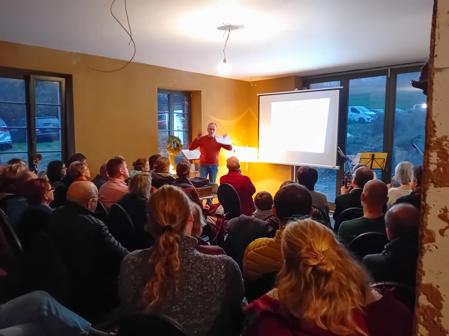 Es war seit Beginn der Baustelle der 3. Baukulturnachmittag. Eigentlich sollte damit die Blockstube eingeweiht werden. Da es auf der Baustelle mitunter unvorhersehbar läuft, ließ die Fertigstellung auf sich warten und es brauchte eine andere Option. Der zukünftige Workshopraum ist zwar Teil des Neubaus, aber dennoch ein schöner Raum, um auch über Baukultur zu sprechen. Wieland Menzel, Hausforscher und Umgebinde-Experte aus Dittelsdorf gab einen super spannenden Überblick über die Verbreitung der Umgebindehäuser und über den baulichen Wandel. Arnd Matthes, ebenfalls Experte und langjähriger Geschäftsführer der Stiftung Umgebindehaus, erläuterte Möglichkeiten der digitalen Hausforschung. Die Veranstaltung war sehr gut besucht und viele nutzen den Nachmittag auch zum Austausch, für gute Gespräche und ein gemütliches Beisammensein.
